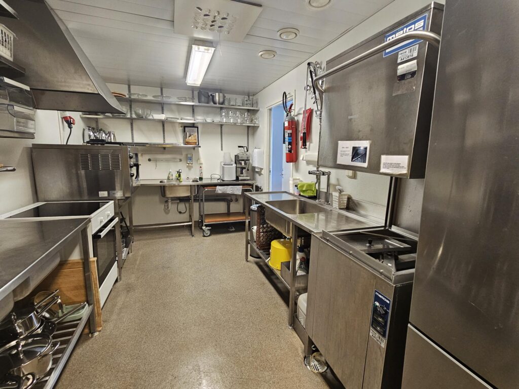 Kokoustilan vieressä on suuri, huippuvarusteltu keittiö; jää-pakastinkaappi, jääkaappi, tiskikone, uuni sekä liesi. Lisäksi tiloista löytyy TV, suuri bluetooth-kaiutin jossa mikrofoni (JBL) sekä fläppitaulu.