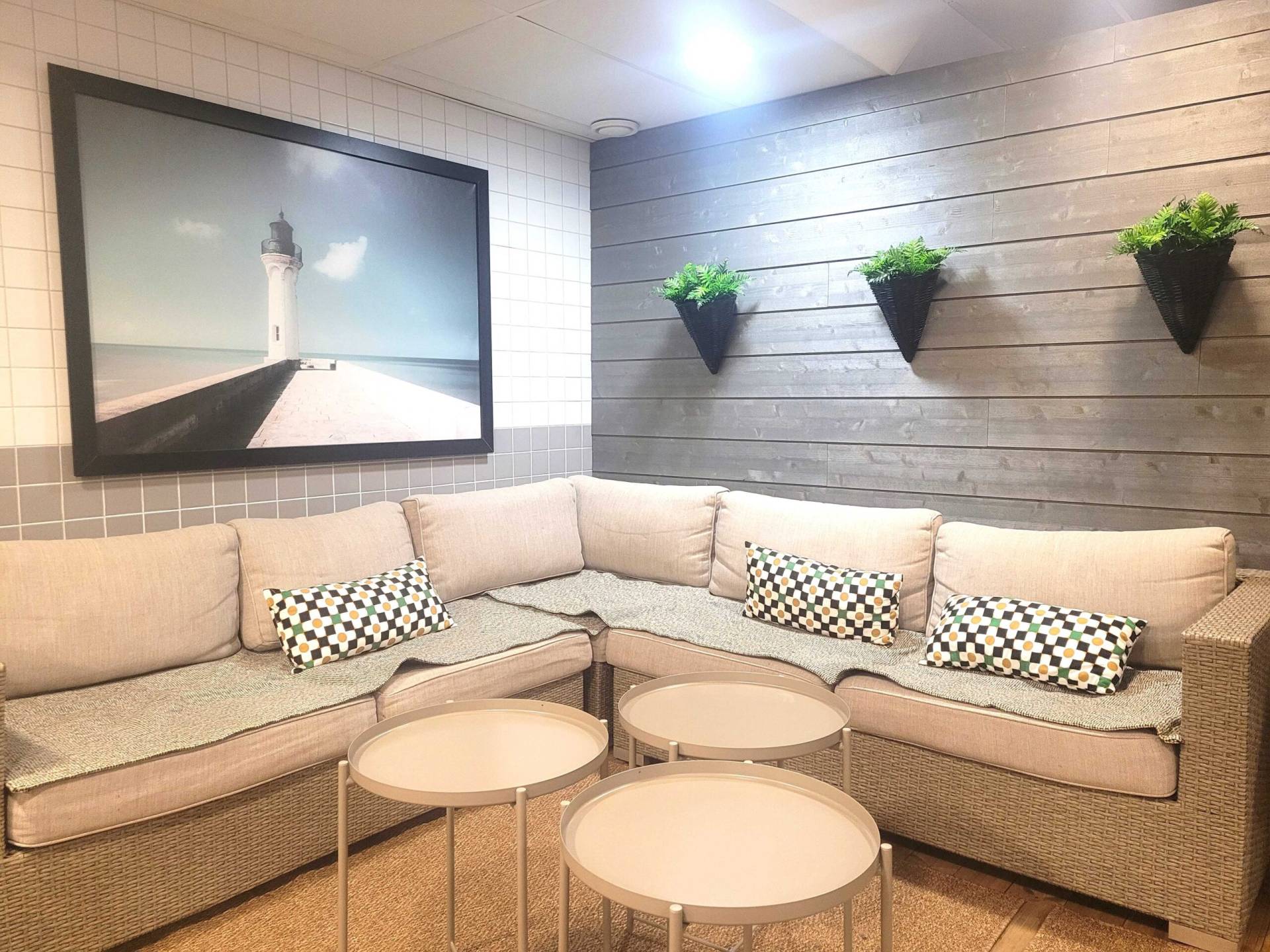 Viihtyisällä saunaosastollamme on kaksi erillistä pukuhuonetta, joka mahdollistaa eri saunaryhmien joustavan kylpemisen.