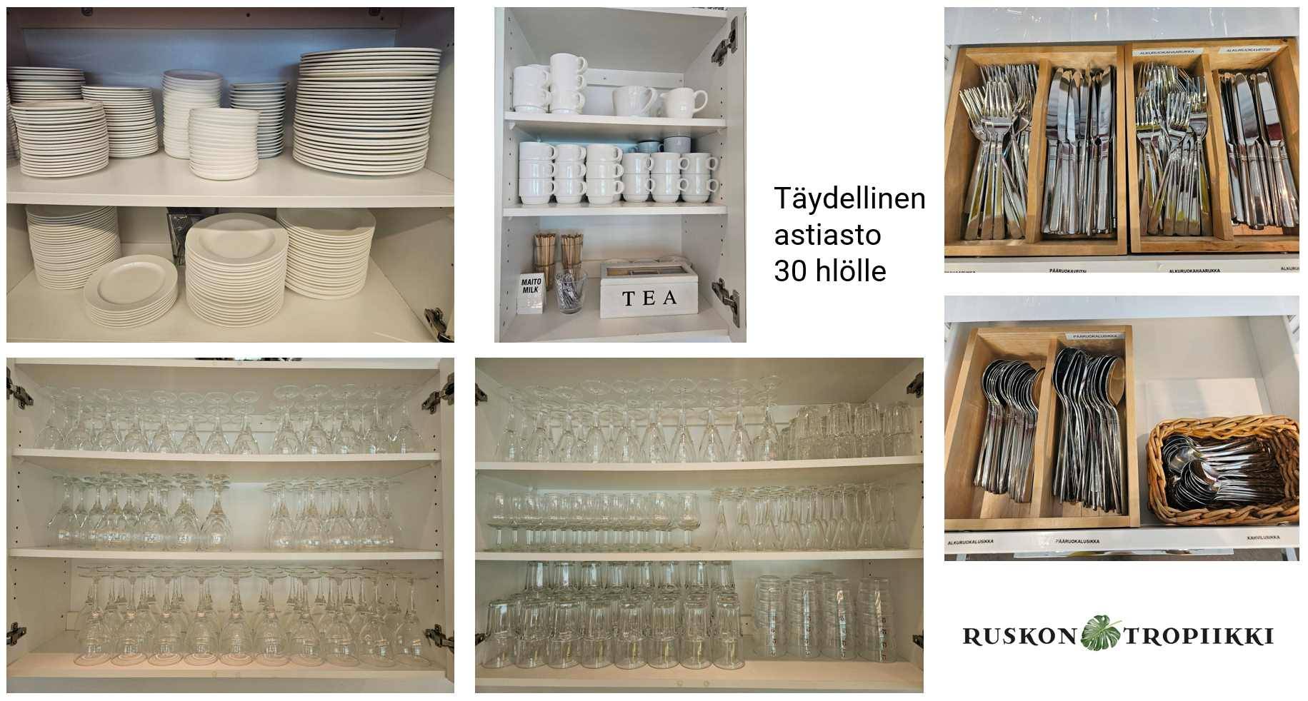 Tiloistamme löytyy täydellinen astiasto 30 hlölle.