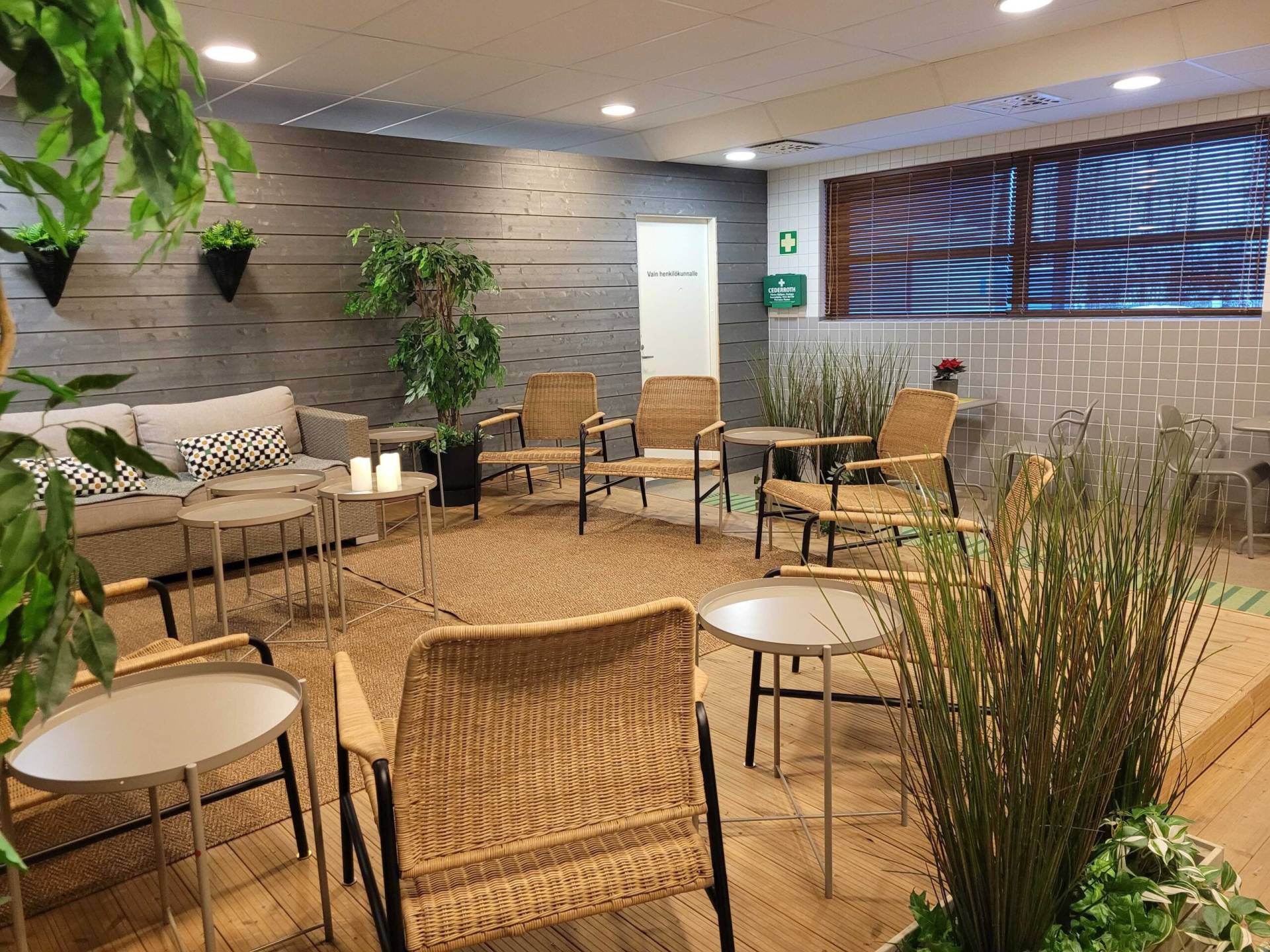 Sauna on tarkoitettu noin 20 henkilön käyttöön. Lisäksi tiloissamme on poreallas sekä sisäterassi kalusteineen oleskelua varten.